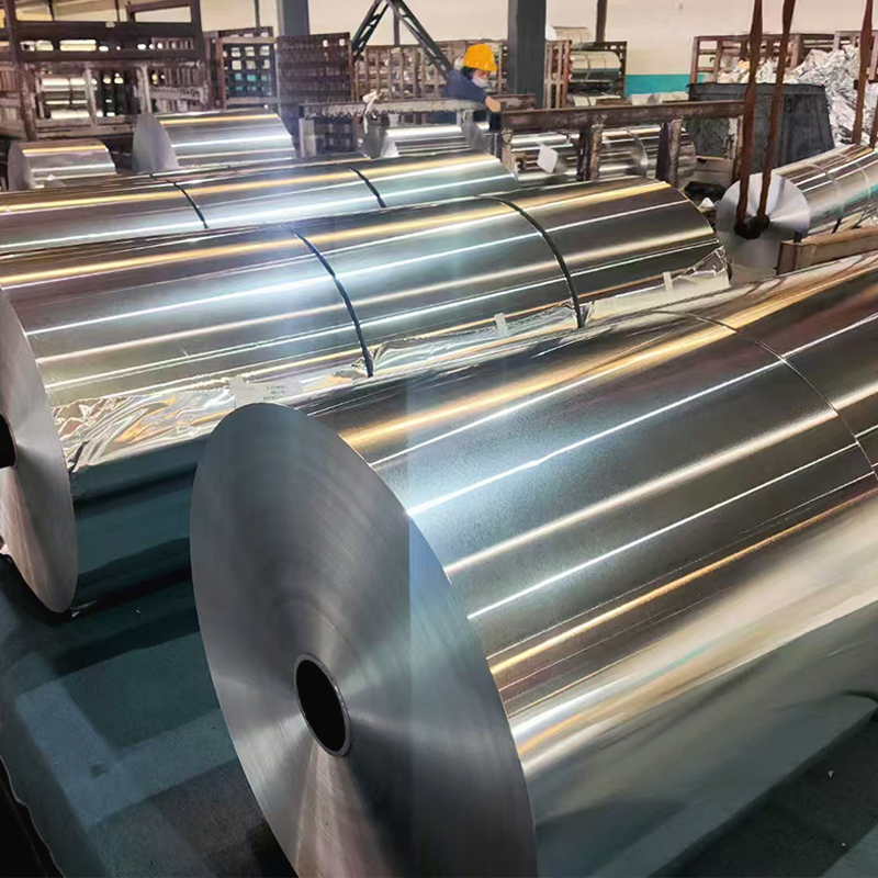 Ingot dipanaskan hingga 400-500 ℃ dan mengalami beberapa umpan panas dengan mesin rolling kontinu, mengurangi ketebalan dari beberapa puluh milimeter menjadi sekitar 3mm dari lembaran perantara; Kemudian lembaran perantara dikirim ke mesin rolling dingin pada suhu kamar dan mengalami beberapa umpan yang dingin, mengurangi ketebalan ke ukuran target 6-12 mikrometer; Setelah itu, foil yang digulung dingin digulung ke dalam koil dan dikirim ke tungku anil di 350-450 ℃ untuk melembutkan dan menghilangkan stres internal; Setelah anil, koil tidak dilepas dan dipotong menjadi lebar 1-2 meter untuk penggunaan umum, dan pada saat yang sama, akurasi kinerja dan ketebalan diperiksa menggunakan peralatan otomatis; Akhirnya, foil yang memenuhi syarat diputar ulang ke poros inti besar, dikemas, diberi label, dan disimpan untuk pengiriman.